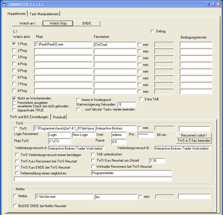 Startet all Ihre Programme und überwacht in Abwesenheit den korrekten Ablauf des Handels.